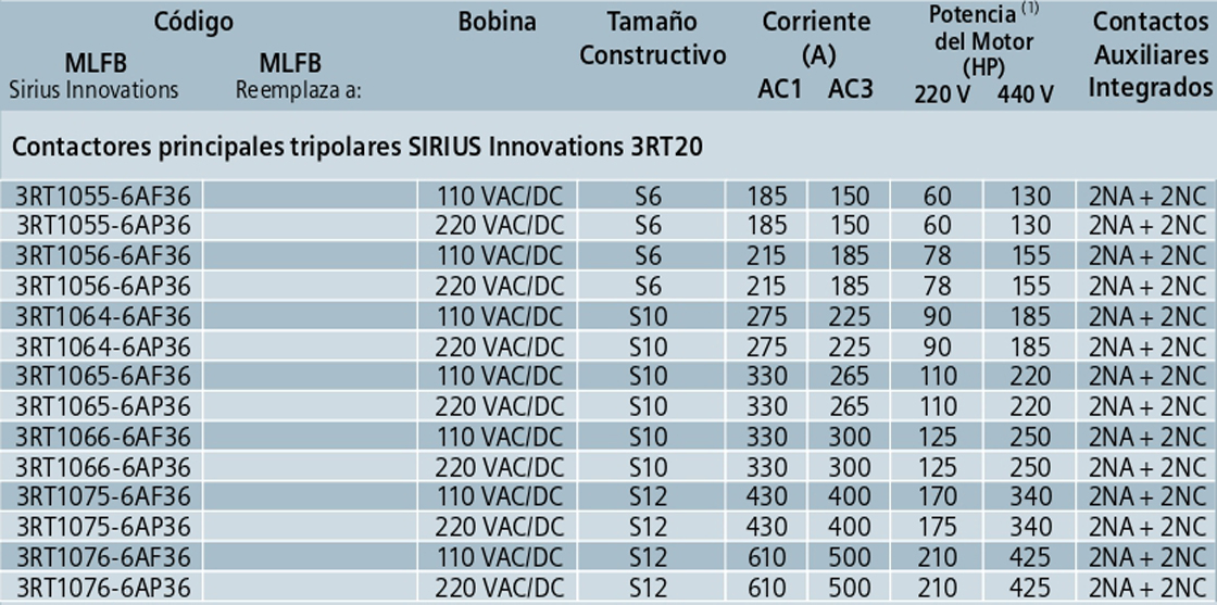 Inicio > Productos > CONTACTORES PRINCIPALES CON BOBINA EN CORRIENTE ALTERNA 3RT
