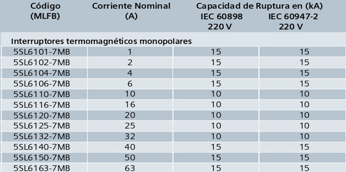 > INTERRUPTORES TERMOMAGNÉTICOS MONOPOLARES 5SL6