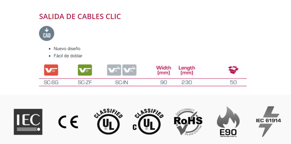 > SALIDA DE CABLES CLIC